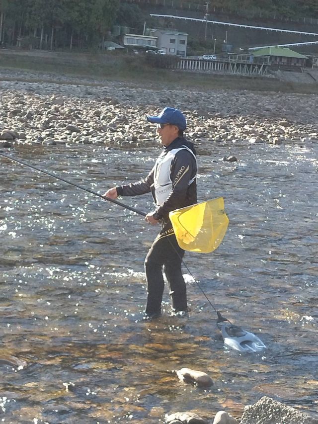 | 10/29(水)晴 気温19度 シマノインストラクター島 啓悟さんが日置川へ釣行して下さいました。 向平へ入川してくれていました。 遠い所、ありがとうございました。 | ![]() |